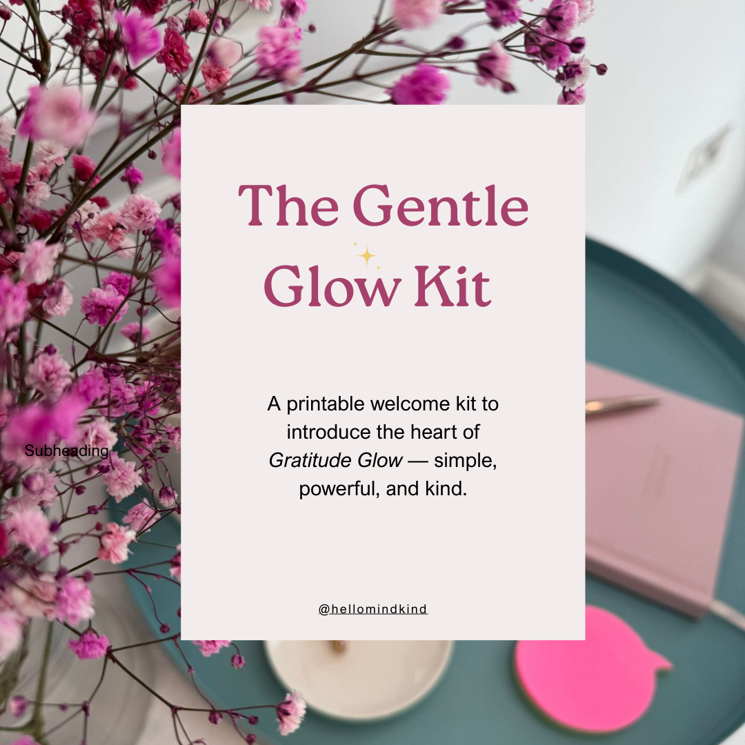 Our free Gentle Glow Kit shows you how 3 minutes of gentle gratitude can fit into your real life. 31 pages of practical guidance, sample pages, and zero guilt.